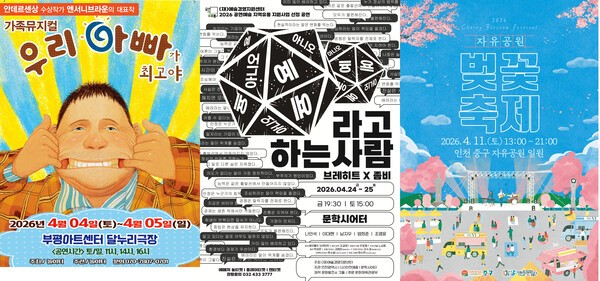 인천투데이=김윤정 기자│봄꽃 피어나는 4월, 인천에서 열리는 주목할 만한 공연과 전시, 축제 등 문화 행사를 한자리에 모았다. 가족 뮤지컬과 연극, 공연, 전시회